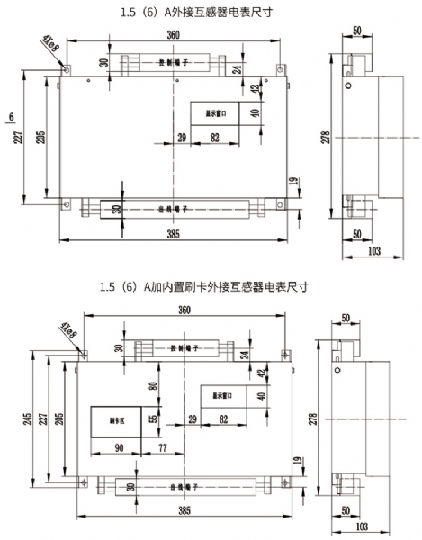 ◆ XY-85型和XY-80型工業用互感器大電流遠控、遠抄及刷卡多用戶電能表尺寸(單位:mm)。